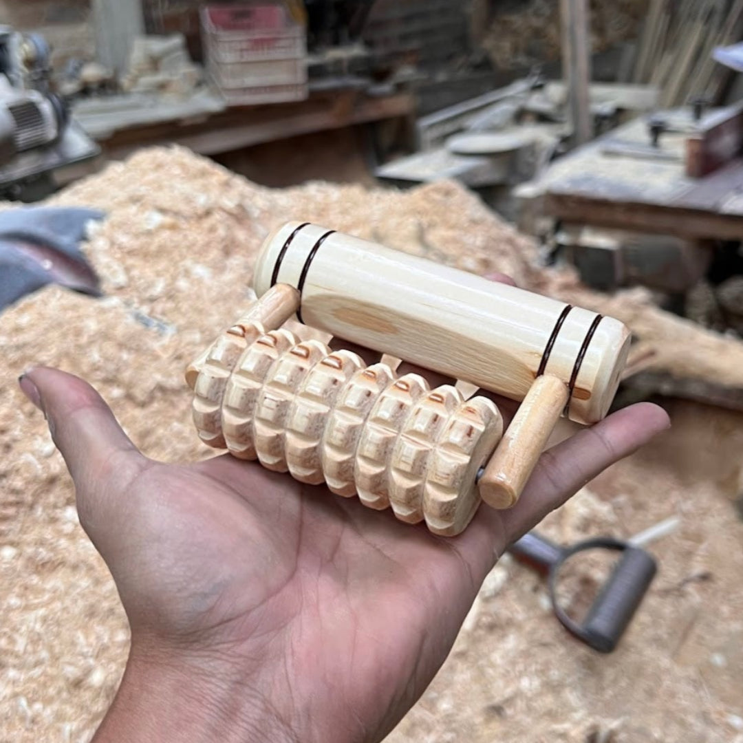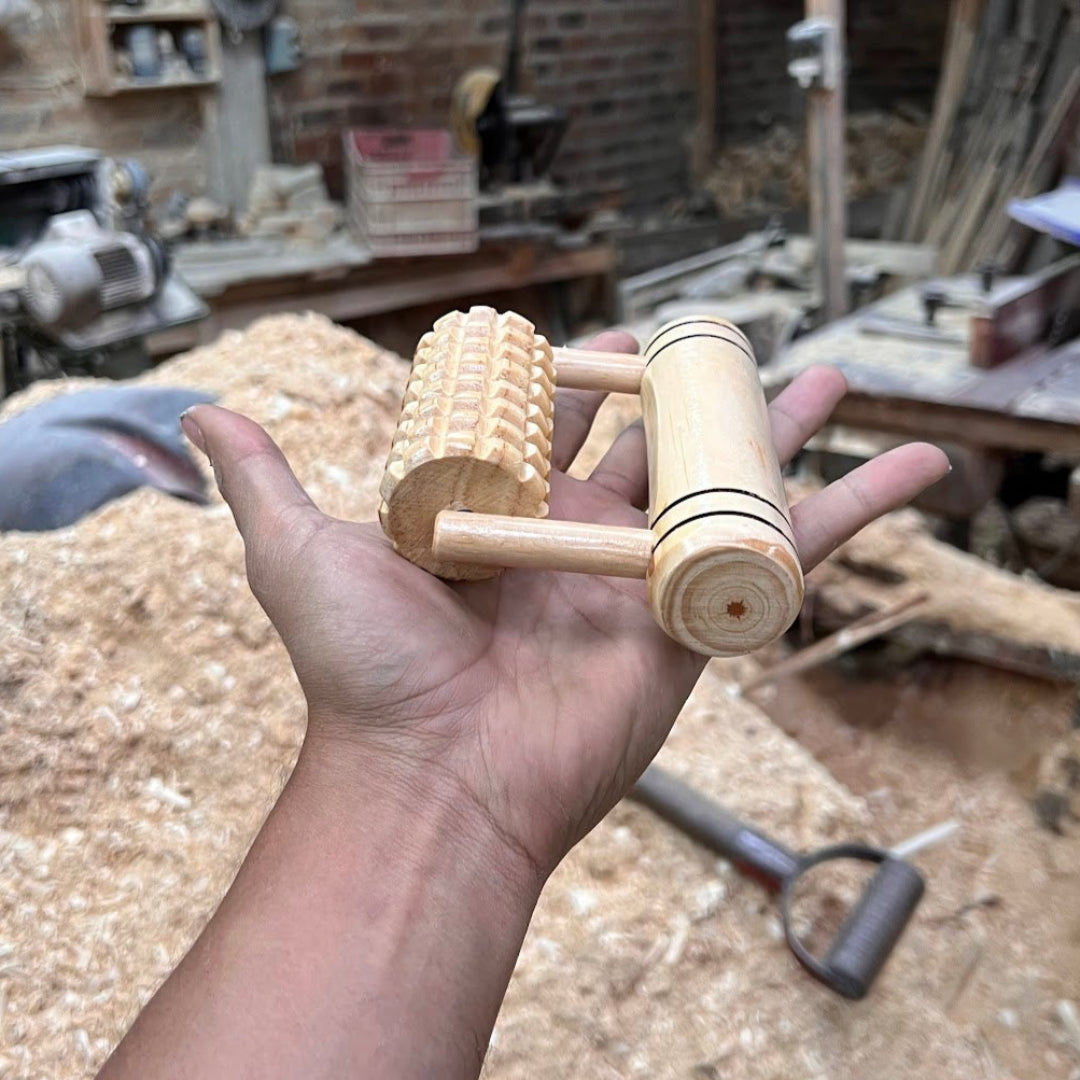 Tallada en pino pátula de primera, secado lento para máxima resistencia y durabilidad. El soporte tipo “mancorna” brinda un agarre cómodo y estable; el rodillo pulido gira sin fricción, no absorbe aceites y se limpia en segundos. Herramienta imprescindible para profesionales exigentes y para quienes buscan resultados visibles y bienestar diario en casa.